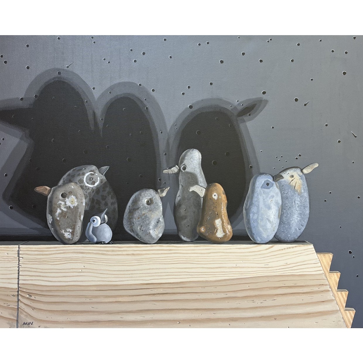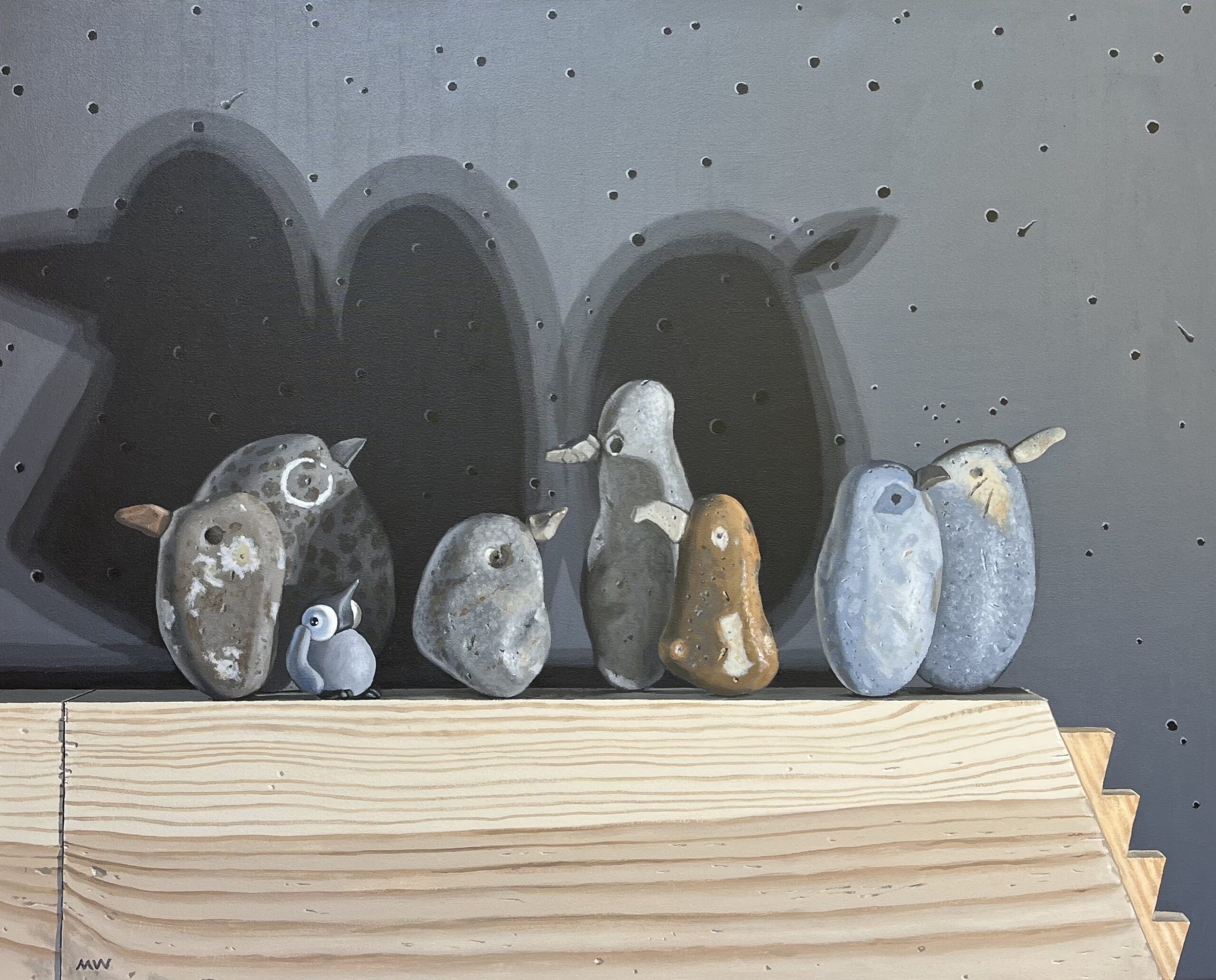 Mark Ward’s paintings emerge from a profound and enduring love of animals encountered both near and far, drawing on wildlife observed in local landscapes as well as during his time living in Africa. From his Suffolk studio, Mark constructs intricate models from paper, string, clay and recycled materials, assembling imagined worlds that reflect the perfectly imperfect nature of life within a contemporary context.