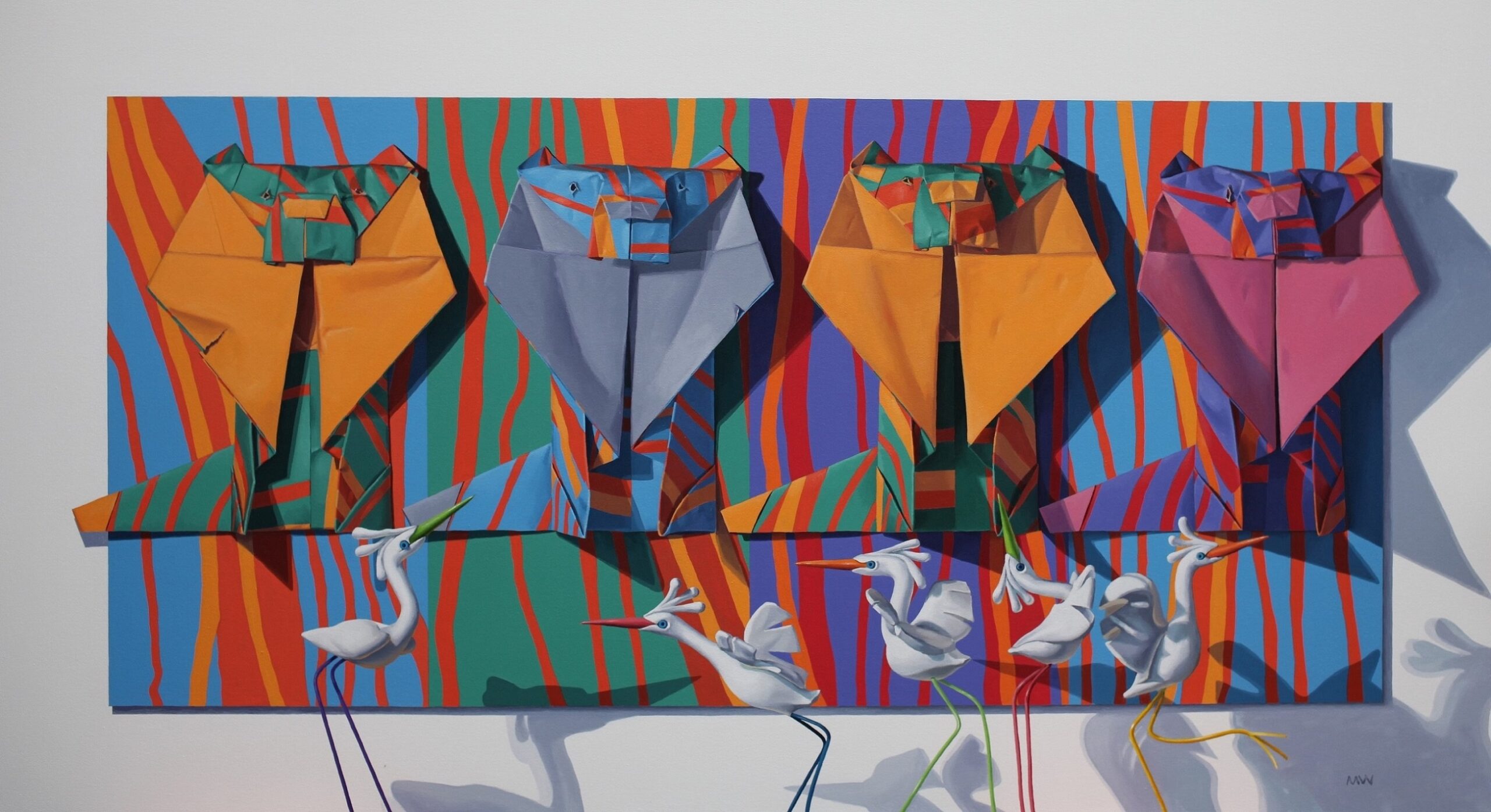 Mark Ward’s paintings emerge from a profound and enduring love of animals encountered both near and far, drawing on wildlife observed in local landscapes as well as during his time living in Africa. From his Suffolk studio, Mark constructs intricate models from paper, string, clay and recycled materials, assembling imagined worlds that reflect the perfectly imperfect nature of life within a contemporary context.