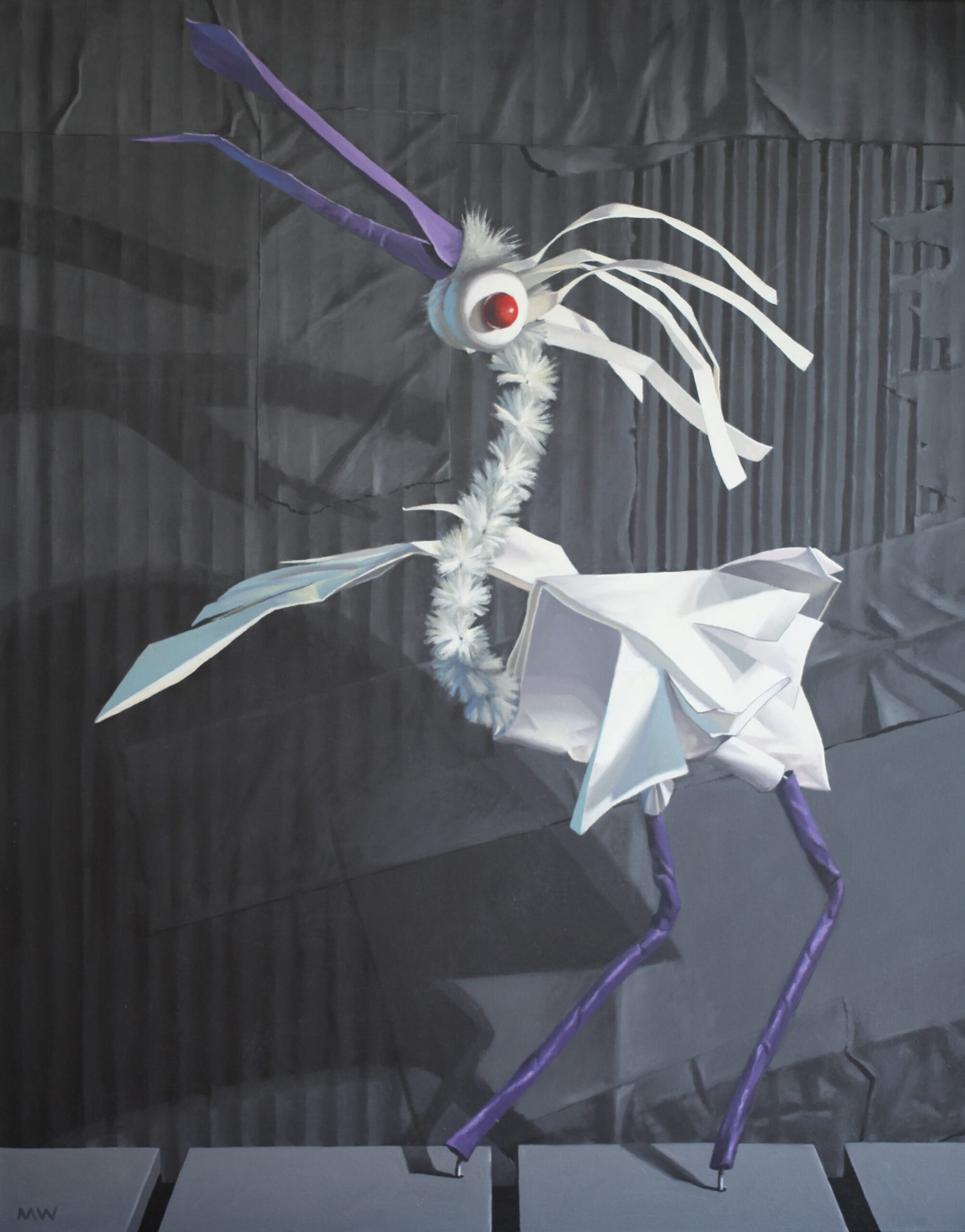 Mark Ward’s paintings emerge from a profound and enduring love of animals encountered both near and far, drawing on wildlife observed in local landscapes as well as during his time living in Africa. From his Suffolk studio, Mark constructs intricate models from paper, string, clay and recycled materials, assembling imagined worlds that reflect the perfectly imperfect nature of life within a contemporary context.